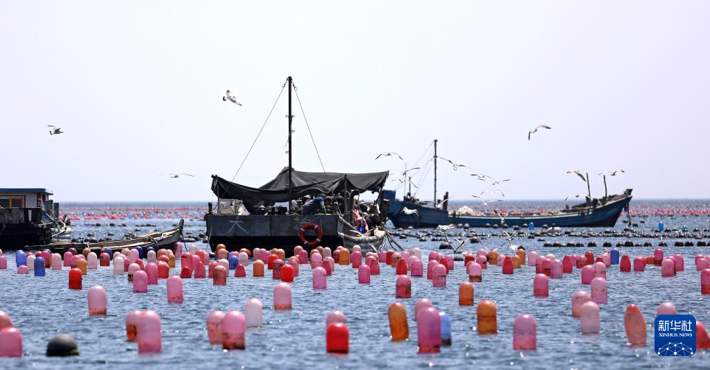 大连市长海县海洋岛镇的渔民在海洋牧场作业。新华社记者 姚剑锋 摄