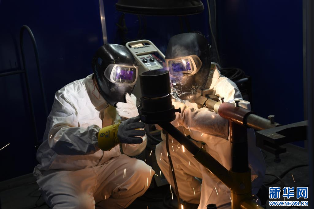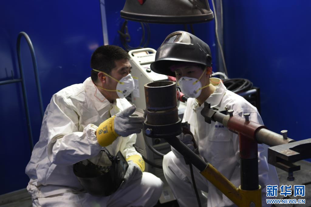 3月14日,在辽宁沈鼓集团,工程师指导青年职工焊接零件。新华社记者 吴青昊 摄