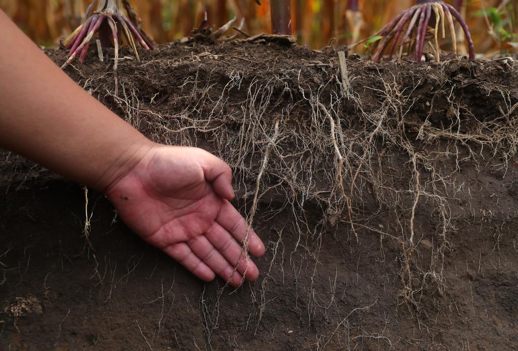 在辽宁省铁岭县,张庄玉米新品种推广专业合作社介绍黑土地保护利用情况。新华社记者杨青 摄