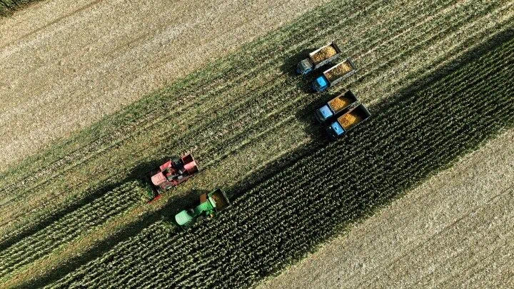 在辽宁省铁岭市昌图县老城镇,秋收进入尾声。秸秆归行机缓缓向前,一簇簇玉米秸秆被推倒打碎,前置归行设备将其分至左右两侧,中间的黑土裸露出来,形成一条种植带。从空中俯瞰,像是在黑土地上画出宽窄不一、两色相间的琴谱。