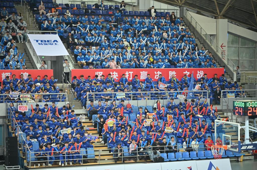 比赛间隙,赛事志愿者为球员捡球、为观众引路,他们来自铁西体育馆不远处的沈阳市装备制造工程学校。学校与华晨宝马、贝卡尔特等企业合办的“订单班”,让焊接、工业机器人技术等专业的学生毕业即上岗。同样热爱篮球的他们,或许是未来“厂ba”的闪耀新星。