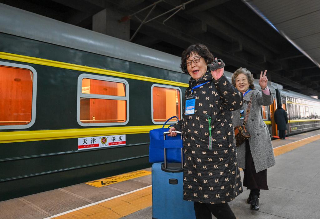 3月15日,游客在天津站准备搭乘银发旅游列车出发。 新华社记者 孙凡越 摄