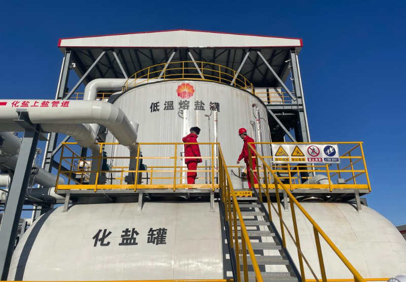 新华网沈阳12月8日电 12月6日,中国石油辽河油田电热熔盐储能注汽试验站竣工投产仪式在欢喜岭采油厂举行,这标志着世界首座电热熔盐储能注汽试验站实现竣工投产,在油气田熔盐储能技术方面实现新的突破。