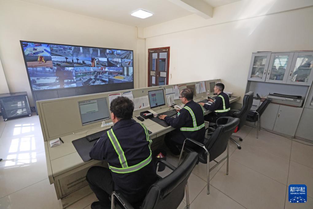 2月18日,在辽港控股(营口)有限公司粮食分公司,工作人员在调度室查看泊位监控。