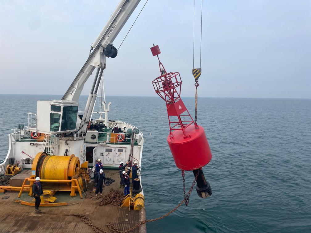 据介绍,此次换标作业涉及庄河港、长兴岛港、丹东港大东港区等水域。工作人员将辖区内上年度冬季设置的冰期灯浮标更换成标体更大的、直径为2.4米的柱形灯浮标,其射程达4海里,目视效果得到极大改善。
