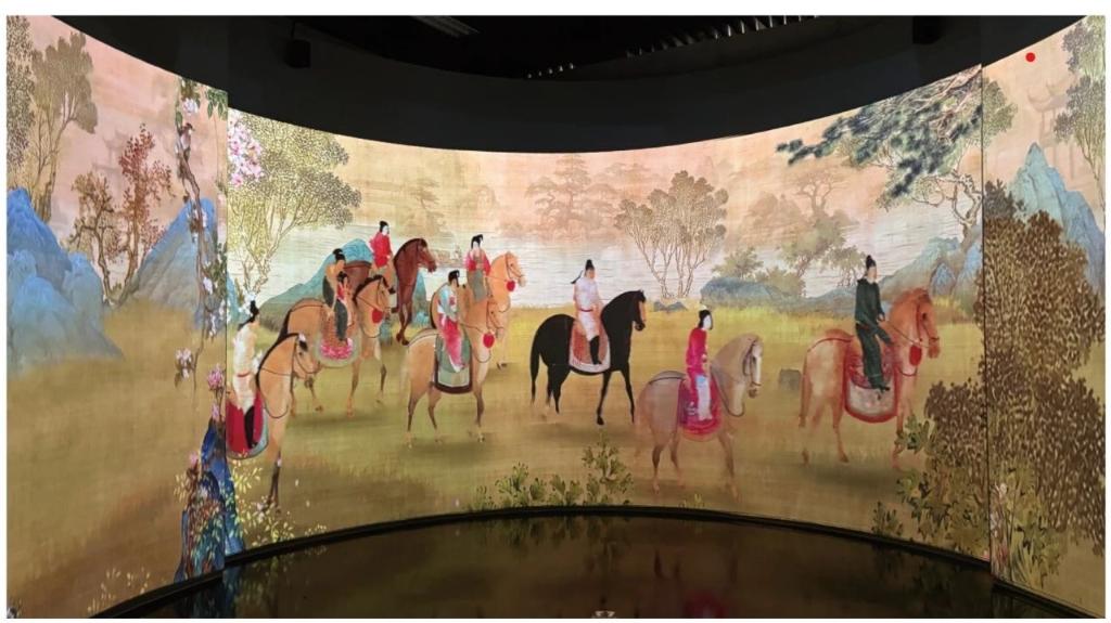 在“唐宋风华——数字画境中的艺术世界”展览上,辽宁省博物馆通过超高清、沉浸式的数字空间,展示《洛神赋图》《虢国夫人游春图》《秋窗读易图》《簪花仕女图》《夏景山口待渡图》《瑞鹤图》等馆藏画作,给观众带来一场场视觉奇观。