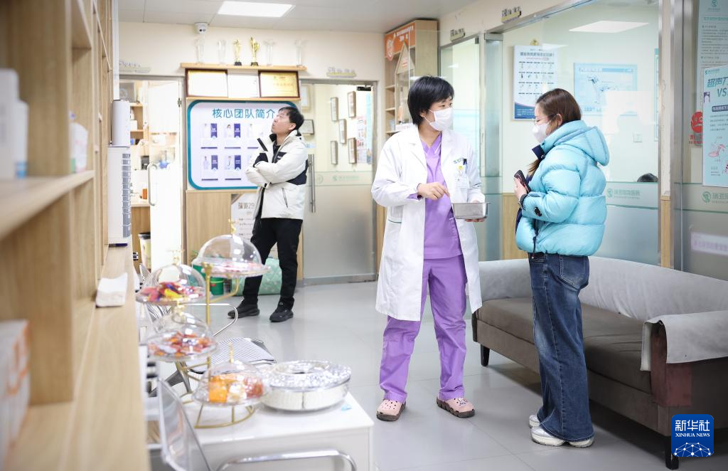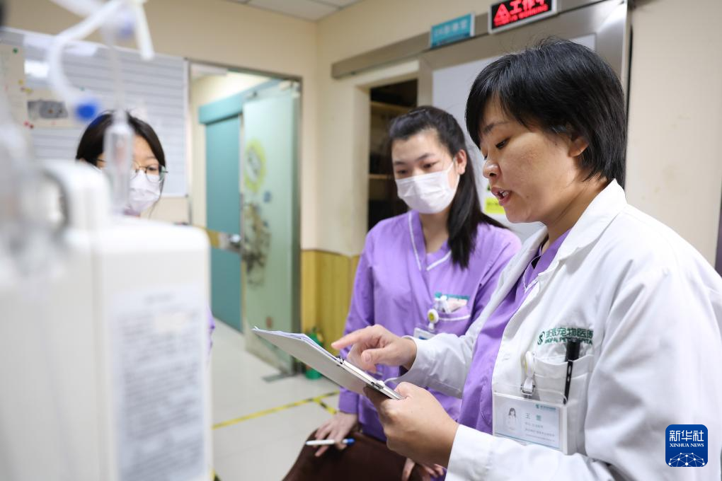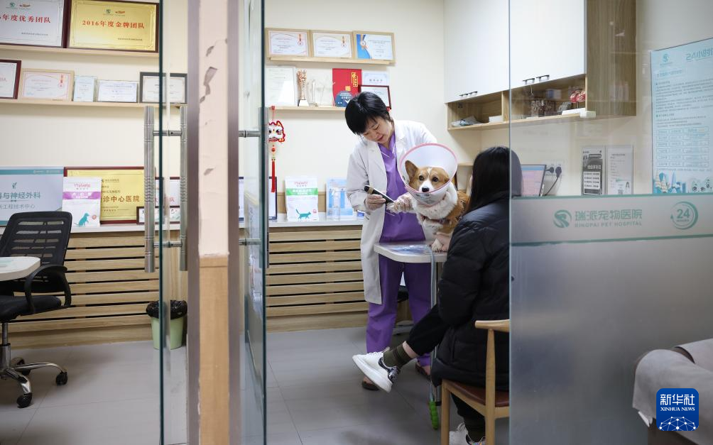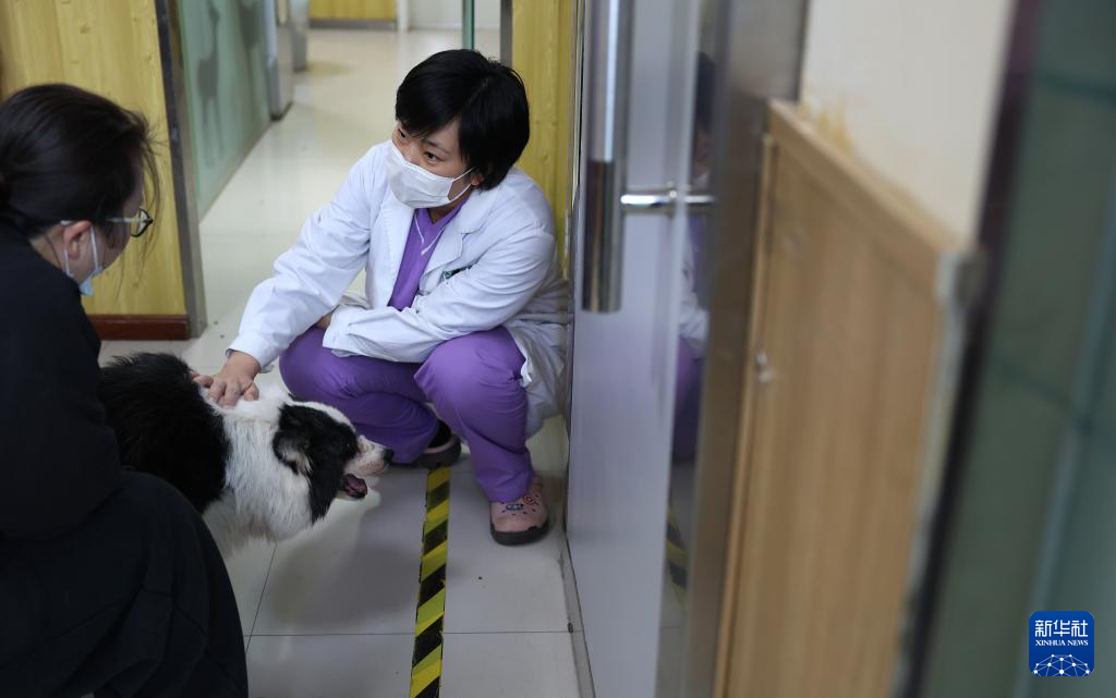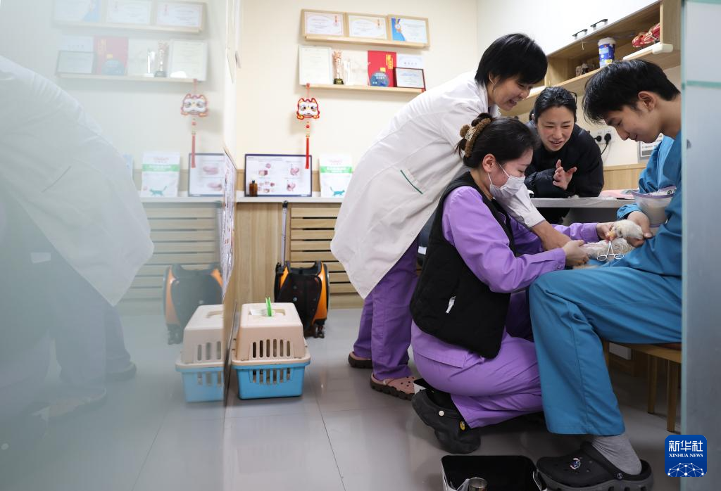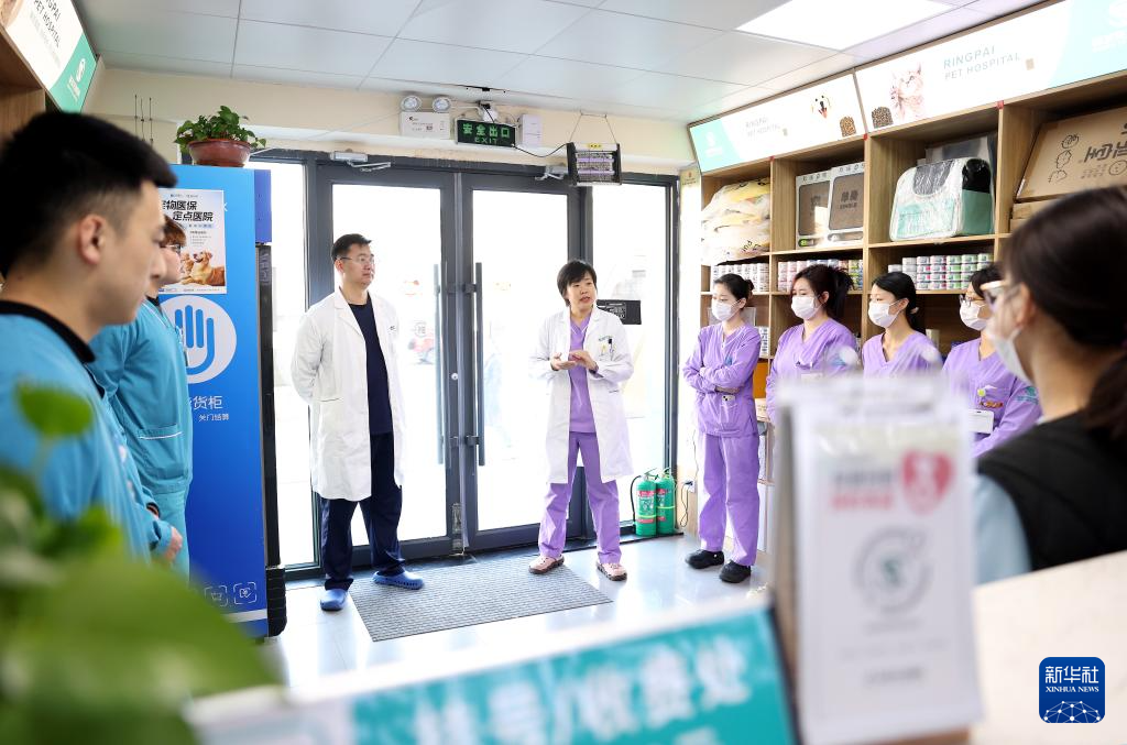 3月18日,王蕾(右一)和值班助理医生交代重症监护宠物的用药事项。新华社记者 姚剑锋 摄pagebreak