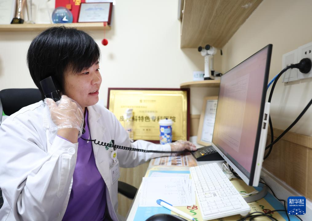 3月18日,王蕾在对几天前手术的宠物进行电话回访。新华社记者 姚剑锋 摄pagebreak
