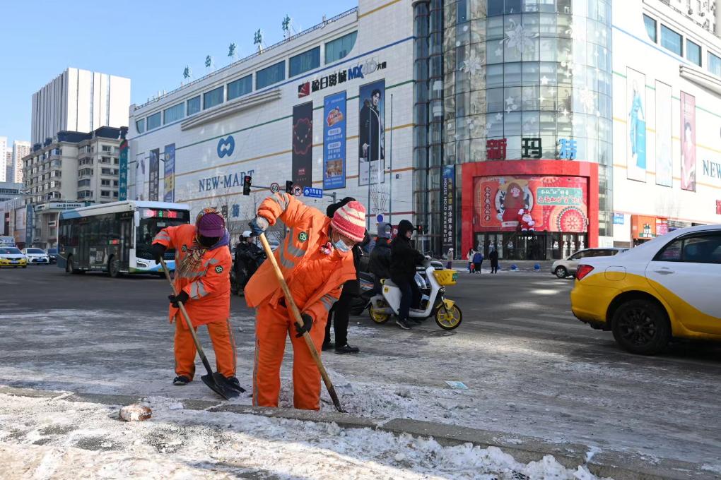 于洪区吉力湖街,环卫工作者除雪完毕。新华社记者刘艺淳 摄