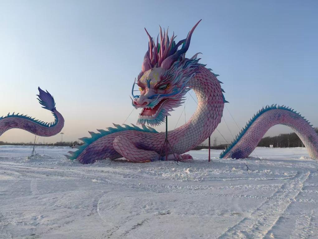 在“稻梦空间”景区内,用稻草搭建的巨龙。(受访者供图)