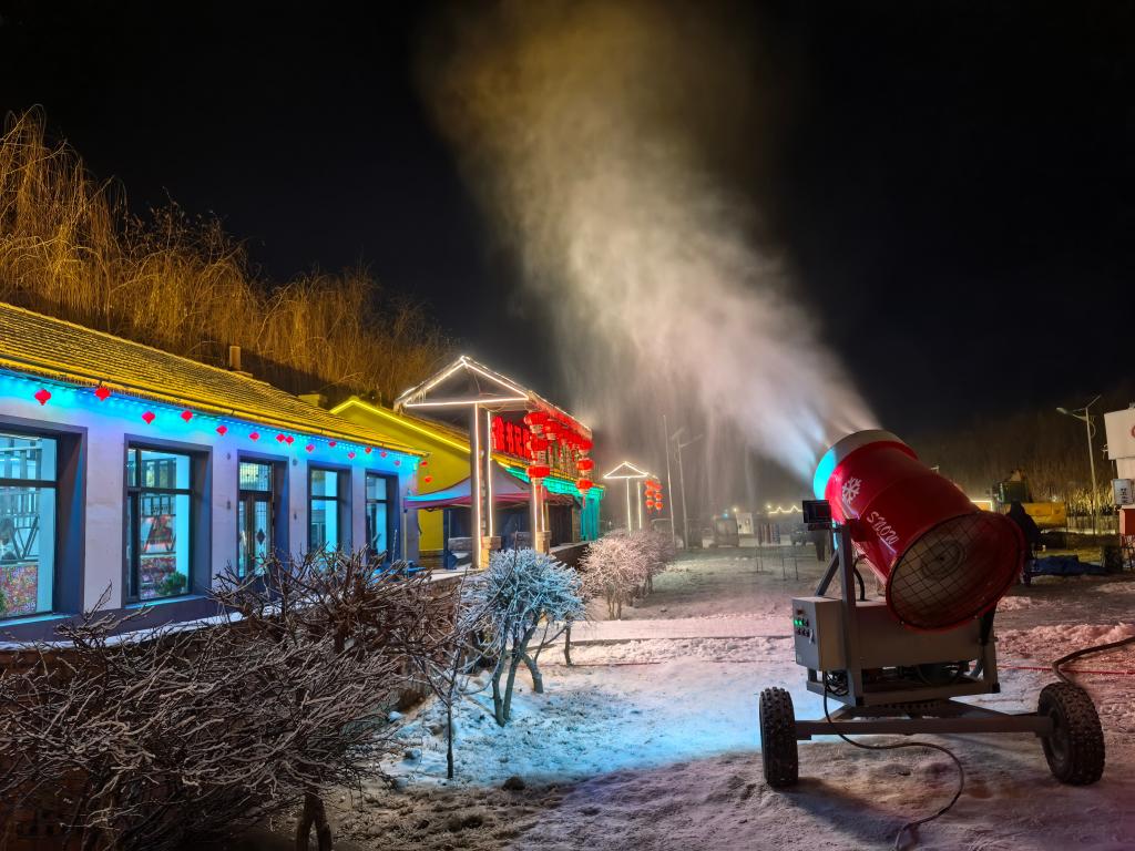 在铁岭市银州区七里村,一台机器正在加紧造雪。新华社记者武江民 摄