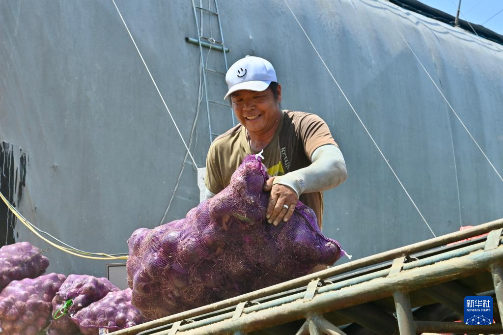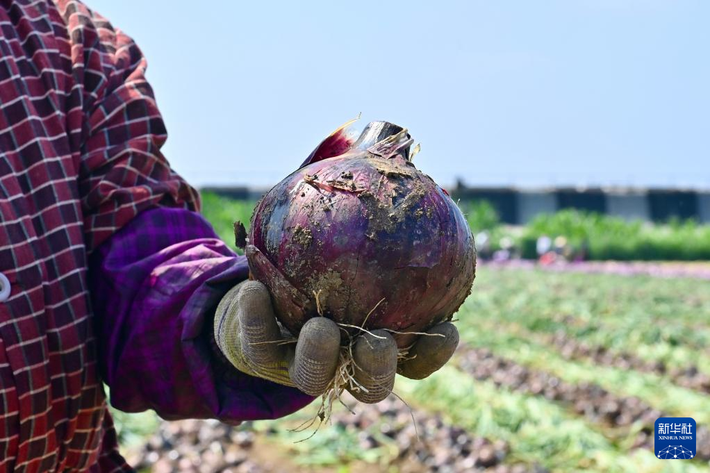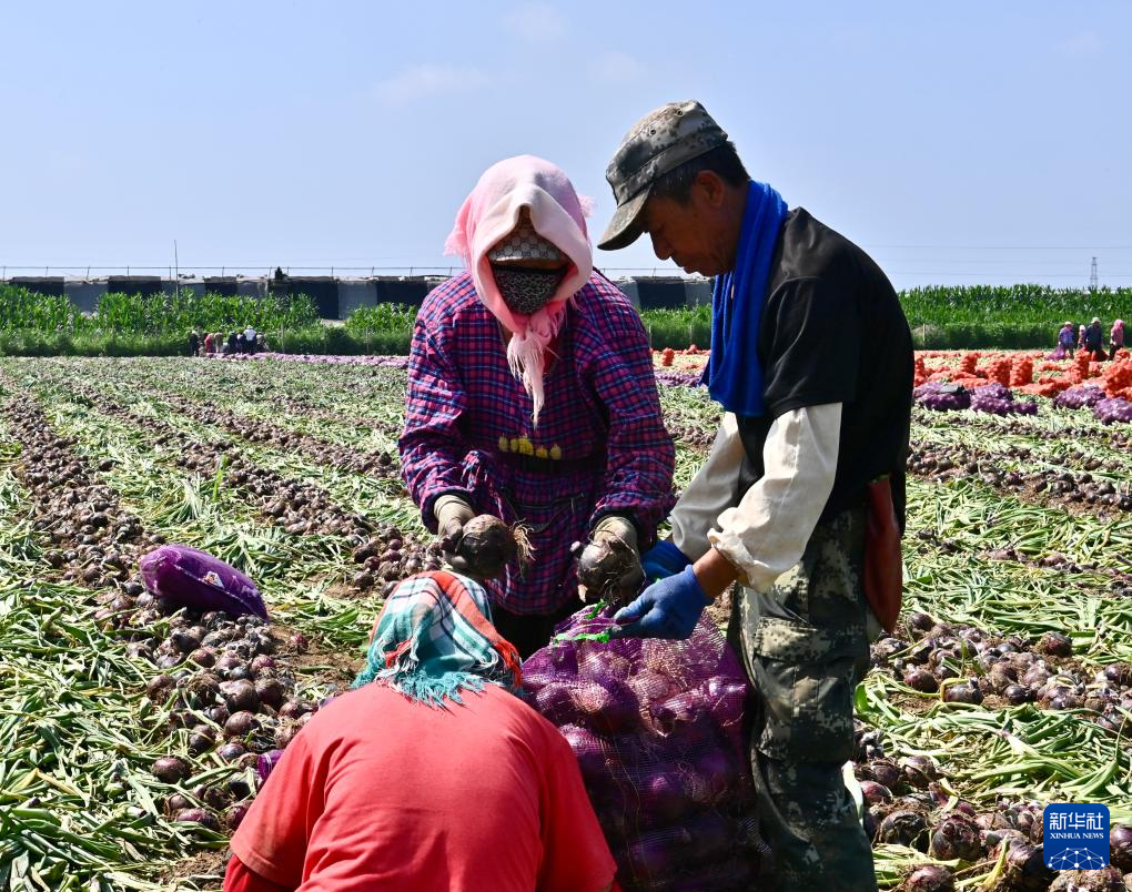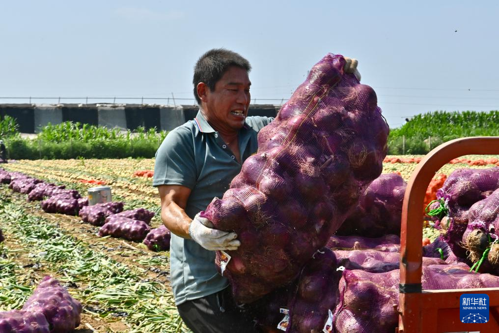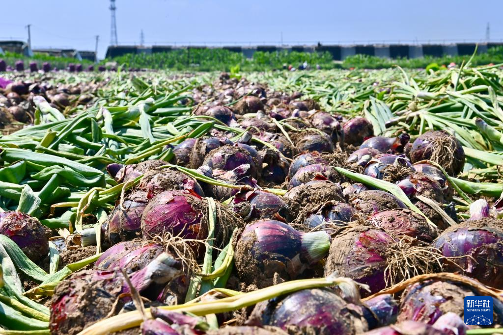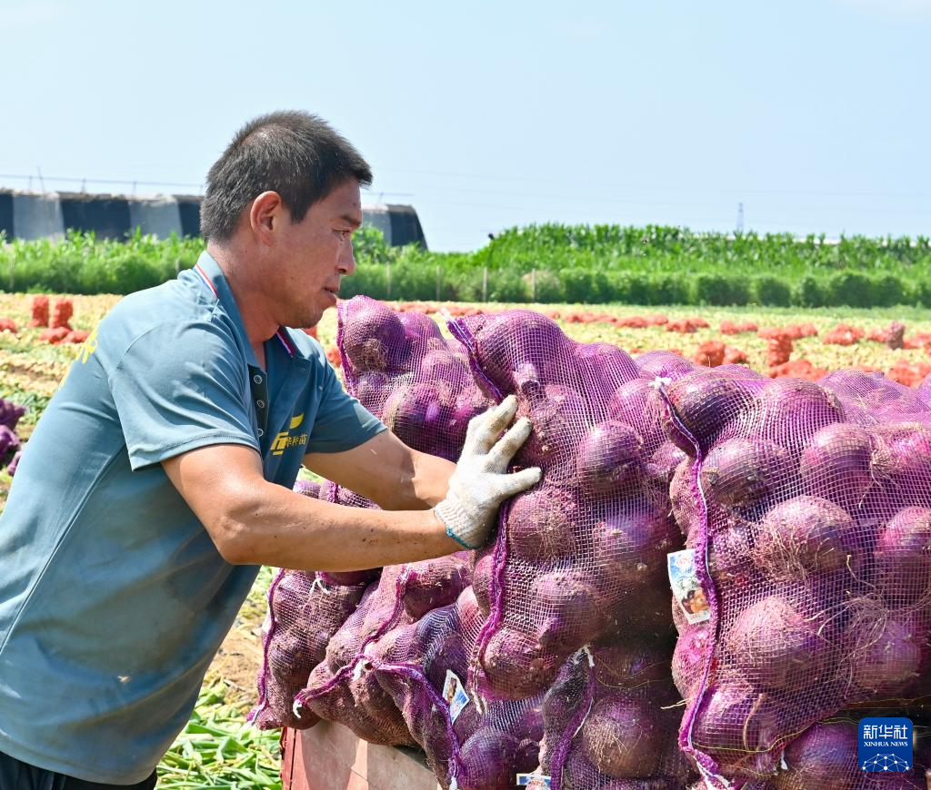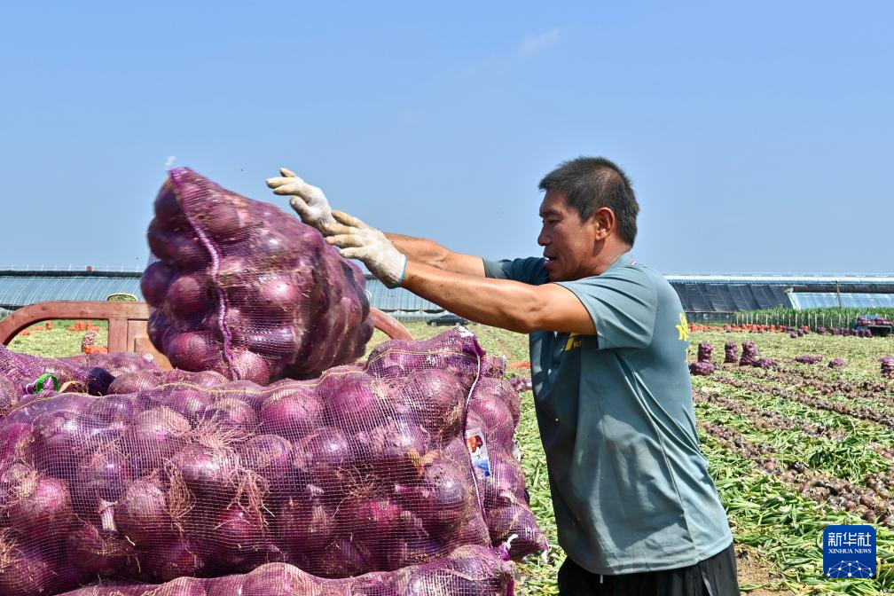 近日,辽宁省鞍山市海城市望台镇瑞亚蔬菜农民专业合作社的圆葱迎来丰收。农户们打包、装车,田间地头一片繁忙景象。