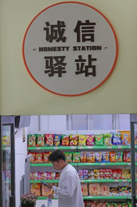 据了解,诚信超市是该校大学生素质教育平台之一,通过无人值守的超市售卖活动,将诚信教育融入日常生活,使学生们用实际行动去践行诚信的意义,整个售卖过程让学生们真切感受到诚信的价值。