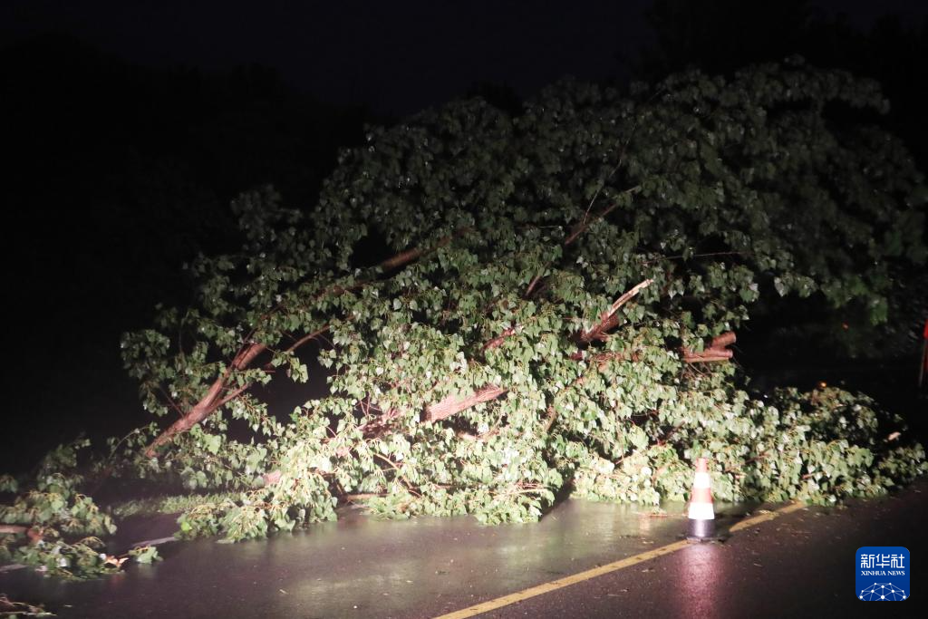 8月20日,在建昌县通往雷家店乡的道路上,树木被洪水折断。新华社记者 杨青 摄