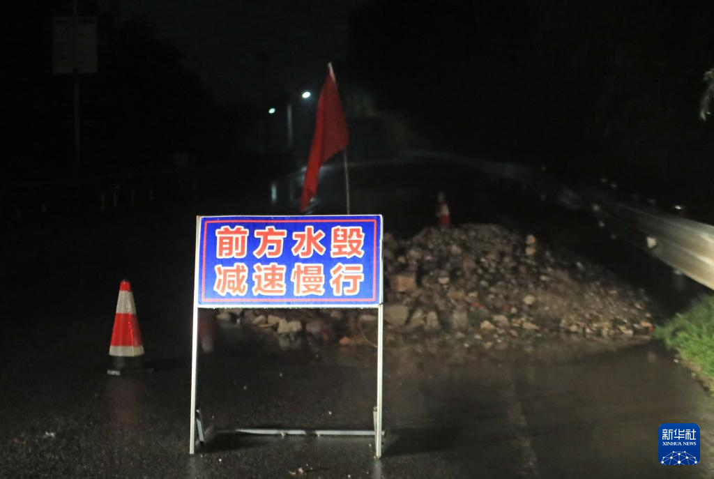 8月20日,在建昌县通往雷家店乡的道路上,交通部门竖立警示牌提示过往车辆。新华社记者 杨青 摄