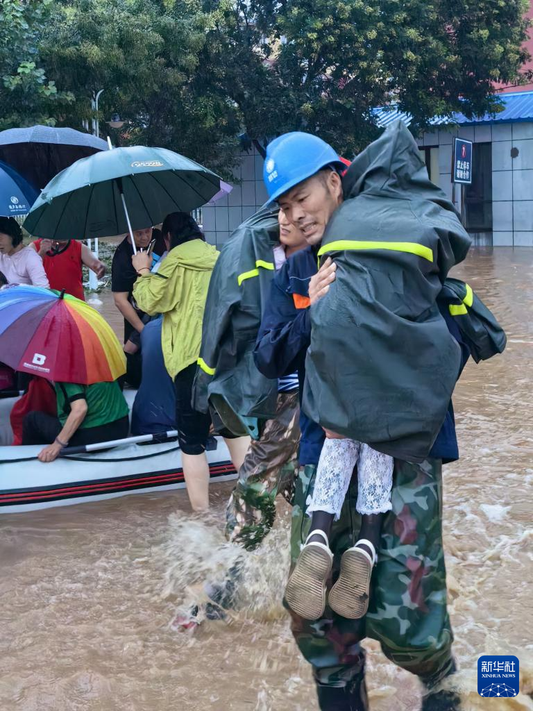 8月20日,国家电网建昌县供电公司员工在建昌县帮助转移受灾群众。新华社发