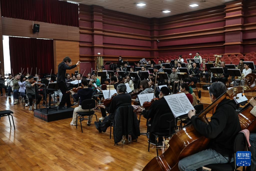3月31日,来自莫斯科的指挥家安东·托尔别夫指挥辽宁交响乐团演奏《七夕》。 新华社记者 潘昱龙 摄