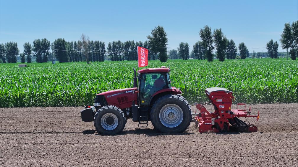 站在田埂上,彰武县农业发展服务中心正高级农艺师曹友文一边指挥农机,一边笑着解释:“这是‘麦茬还田,免耕播种’种植新模式,我们在原小麦的垄沟上播种大豆,合理防控病虫害,不仅节省时间,麦茬还田还能让土地越种越肥。”