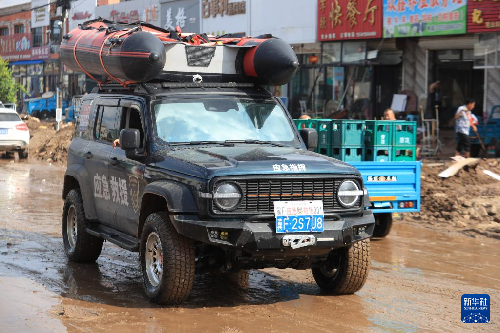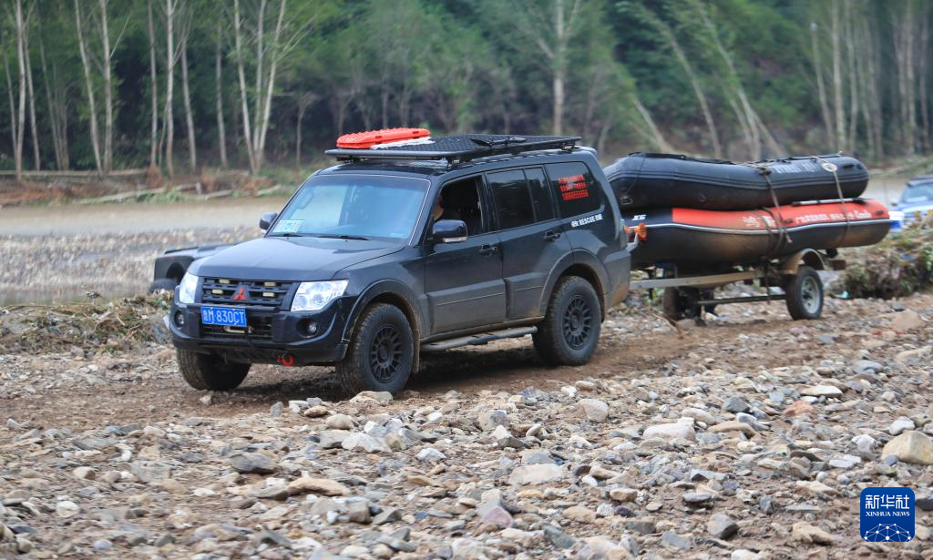 8月21日,在建昌县黑山科乡,一辆救援车辆携带冲锋舟行驶在受灾区域。新华社记者 杨青 摄pagebreak
