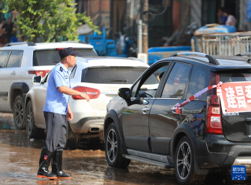 8月21日,在建昌县黑山科乡,派出所民警在指挥交通。新华社记者 杨青 摄pagebreak