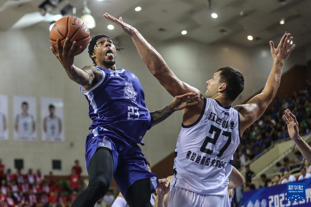 7月9日,江西赣驰队球员加里纳特(左)在比赛中上篮。新华社记者 潘昱龙 摄pagebreak