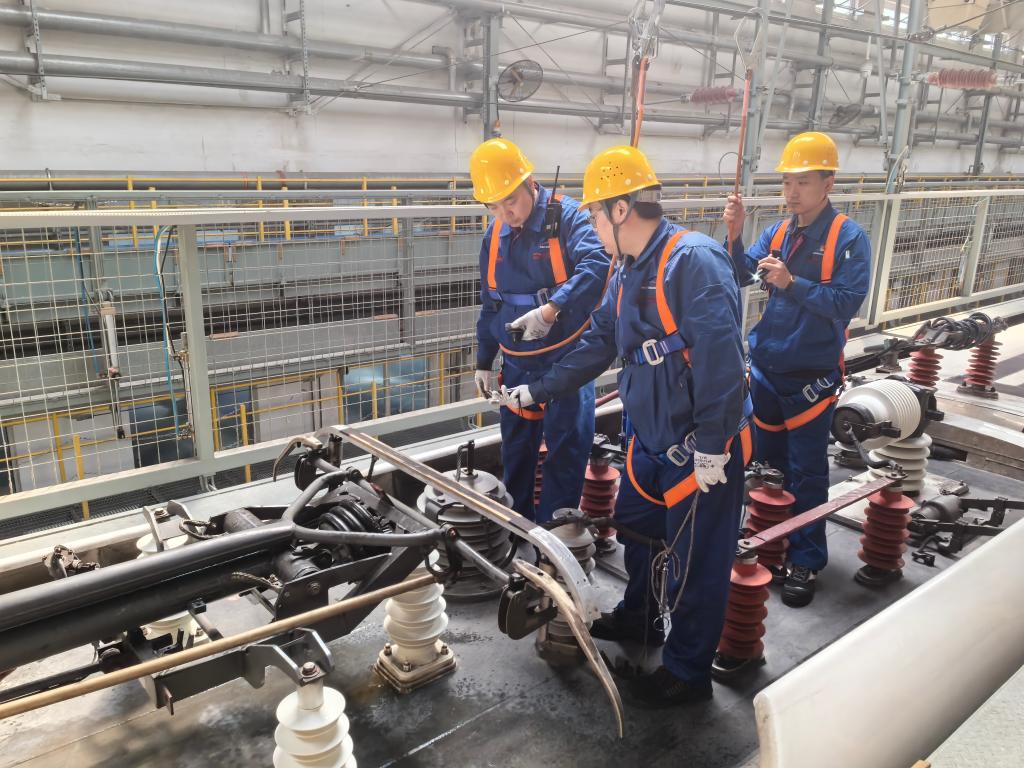 国铁沈阳局沈阳动车段为动车安装金属滑板,应对接触网覆冰隐患。(国铁沈阳局供图)