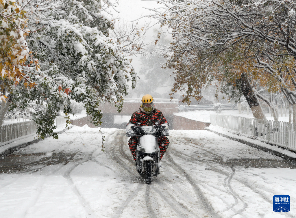 11月6日,在沈阳市浑南区,行人在雪中出行。新华社记者李钢 摄