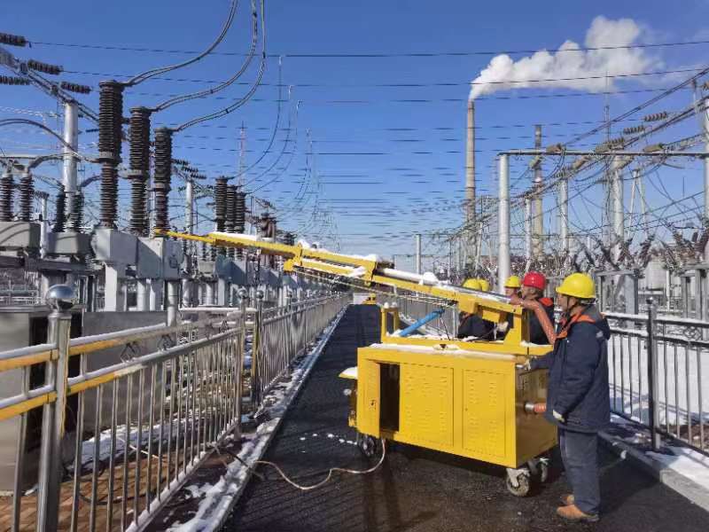 国网抚顺供电公司运维人员利用移动式融冰装置开展设备清雪工作。(国网抚顺供电公司供图)