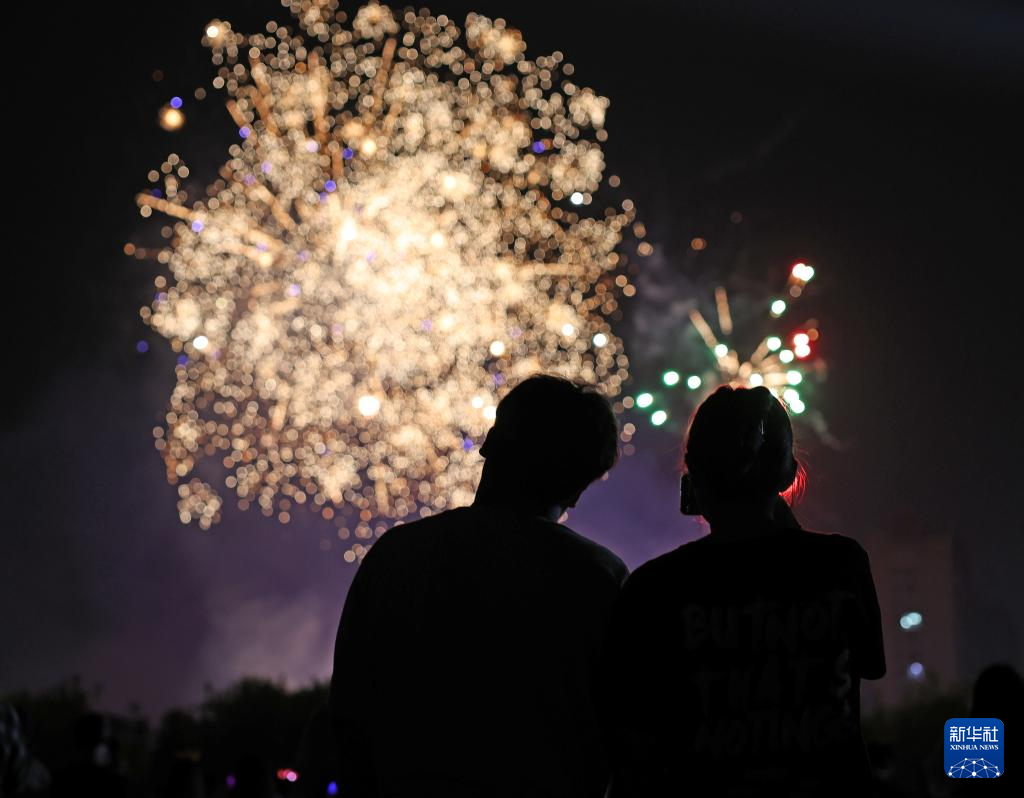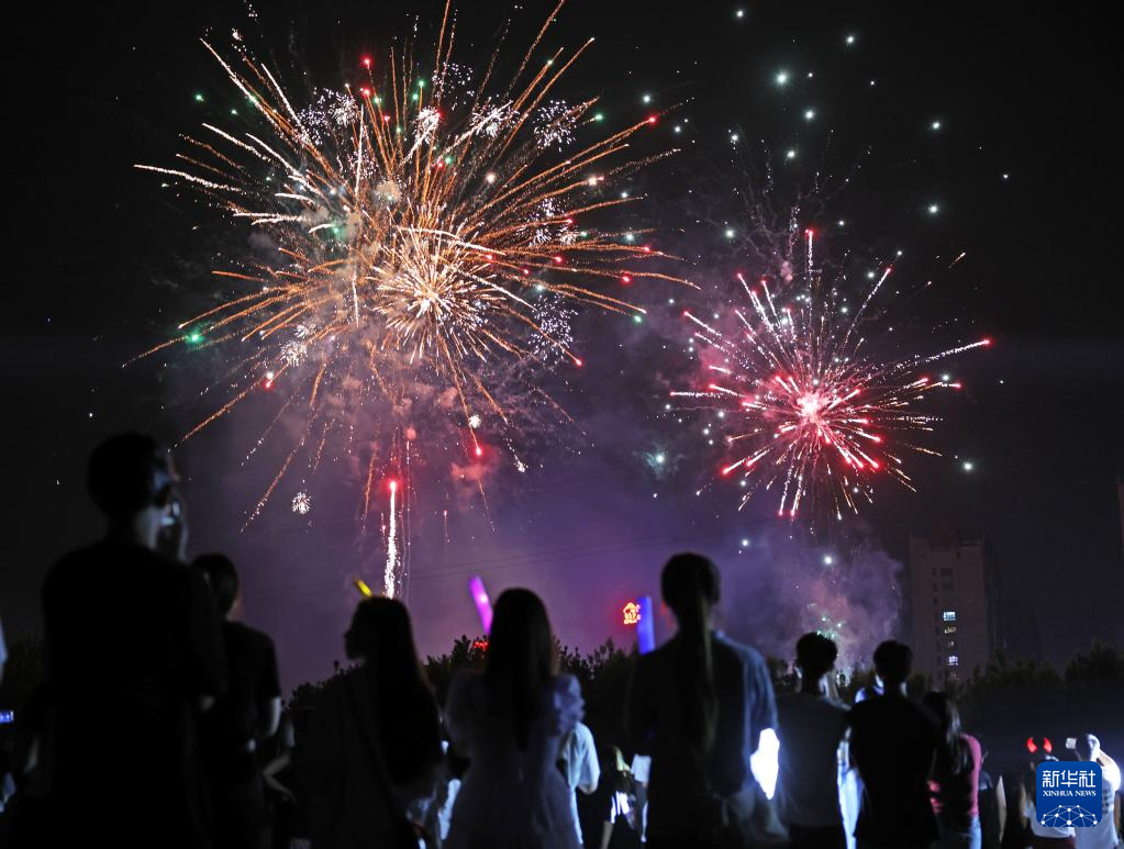 6月19日,在沈阳工学院2023草地音乐节,同学们观看烟花秀。新华社记者 杨青 摄