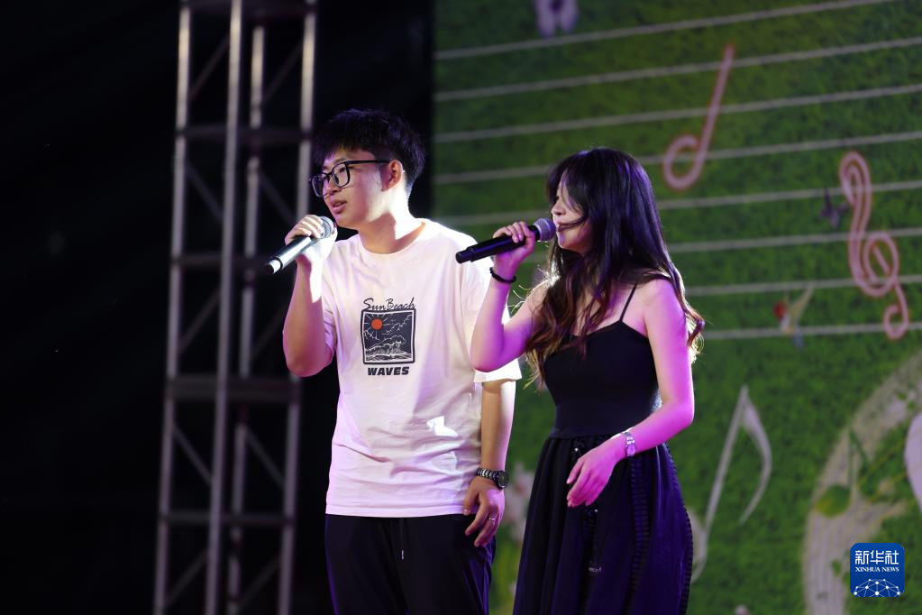 6月19日,在沈阳工学院2023草地音乐节,两名同学演唱歌曲。新华社记者 杨青 摄pagebreak