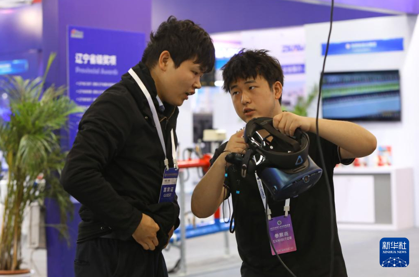 10月18日,参会者在2023全球工业互联网大会上体验工业vr眼镜。新华社记者 陈为 摄