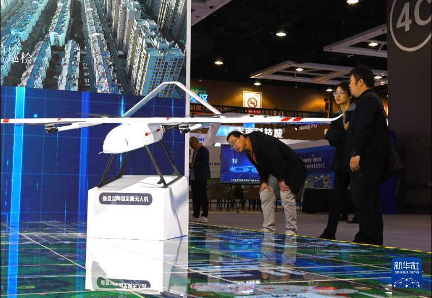 10月18日,参会者在参观垂直起降固定翼无人机。新华社记者 陈为 摄pagebreak