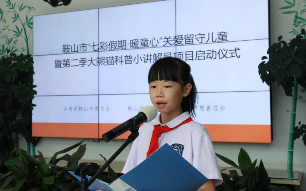 11日上午,由鞍山市民政局、共青团鞍山市委员会、鞍山市慈善总会主办,鞍山市呼吸联盟志愿者协会、乐道社会工作服务中心、大熊猫科普教育基金联合承办的“七彩假期·暖童心”关爱留守儿童暨第二季大熊猫科普小讲解员项目在鞍山动物园启动。大熊猫科普教育基金向鞍山团市委捐赠动物园门票2000张,供2000名特殊、残疾等困境少年儿童免费游园。团市委同时推荐50所小学为大熊猫科普教育基金项目伙伴学校,招募小讲解员100名,并由志愿者家庭开展针对困境儿童的亲情陪伴类志愿服务项目。