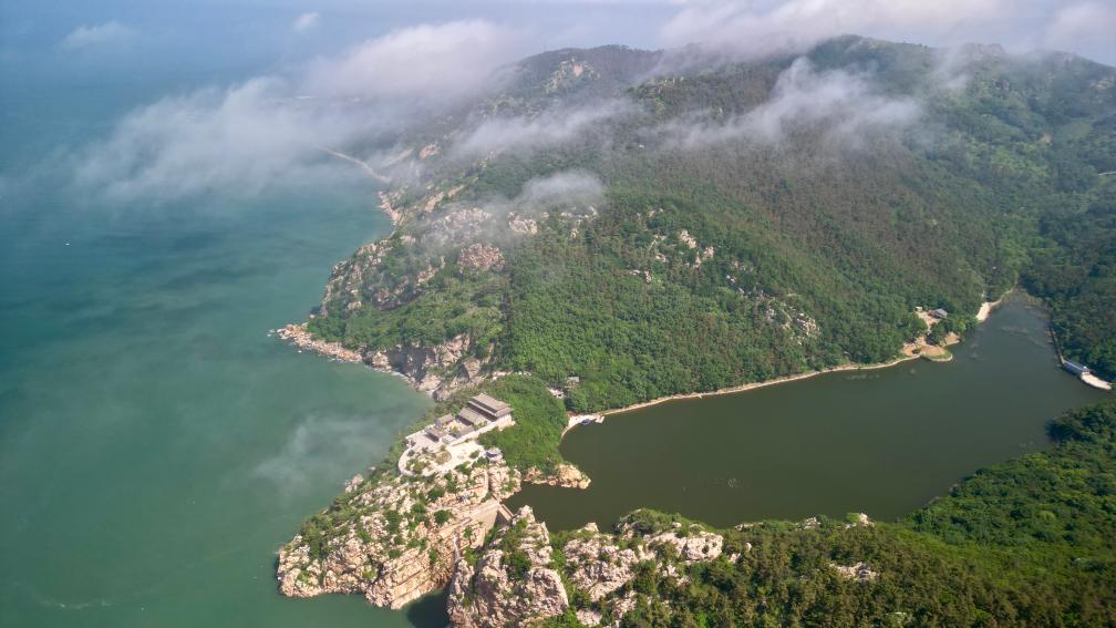 白雾终散,登临海拔近250米的老铁山森林公园,万千气象,令人心旷神怡。在这座岛的制高点眺望,景区群山环绕,三面环海;两山之间的仙女湖更像是流进山里的海洋。