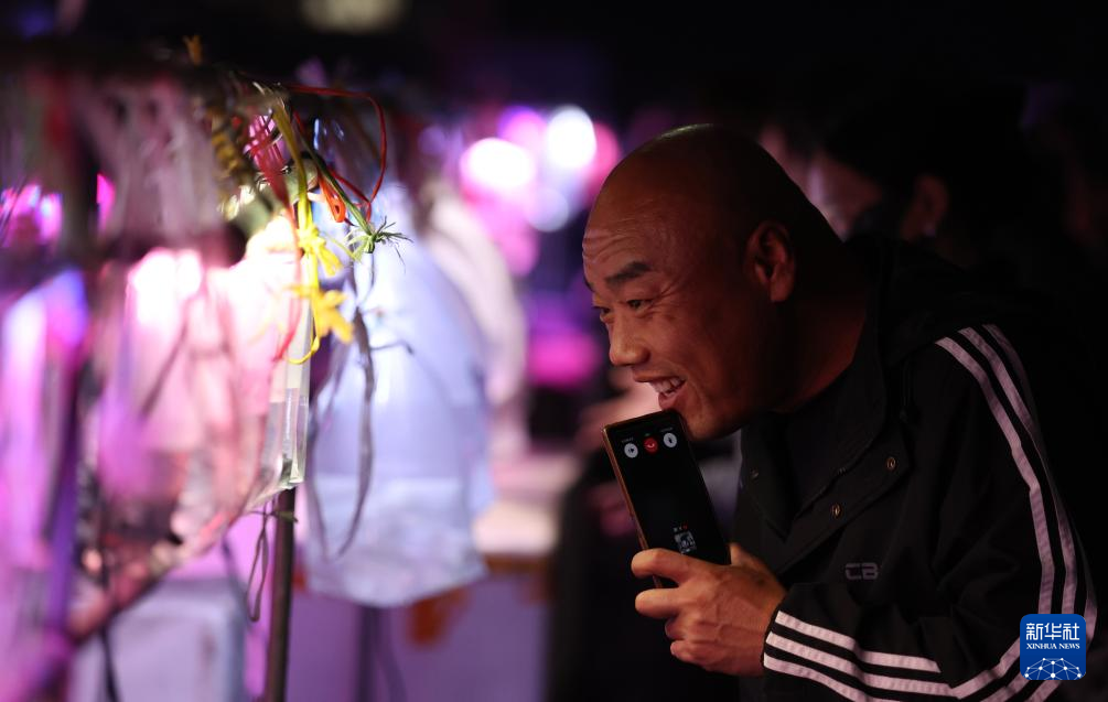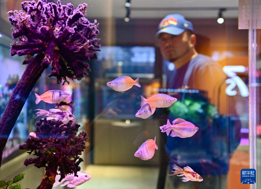 4月10日,顾客在鞍山三台子观赏鱼交易中心选购观赏鱼。