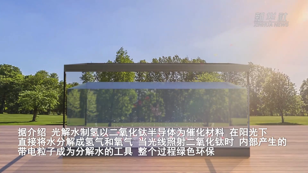 据介绍,光解水制氢以二氧化钛半导体为催化材料,在阳光下直接将水分解成氢气和氧气。当光线照射二氧化钛时,内部产生的带电粒子成为分解水的工具,整个过程绿色环保。
