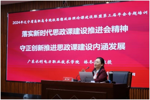 本届年会设置了主旨报告、教学展示、校园参观和实践研修四个阶段。在主旨报告阶段,广东水利水电职业技术学院林冬妹教授以《落实新时代思政课建设推进会精神 守正创新推进思政课建设内涵发展》为题作报告。在教学展示阶段,教育部第三届全国思政课教学展示活动高职高专组特等奖获得者、河南机电职业学院思政课教师韩慧敏和全国高职高专院校思政课第一场“萌新磨课、骨干练兵”活动中,“萌新磨课”组教学展示一等奖获得者、沈阳职业技术学院思政课教师孙雨欣分别进行了课程教学展示并分享了个人备赛经验。