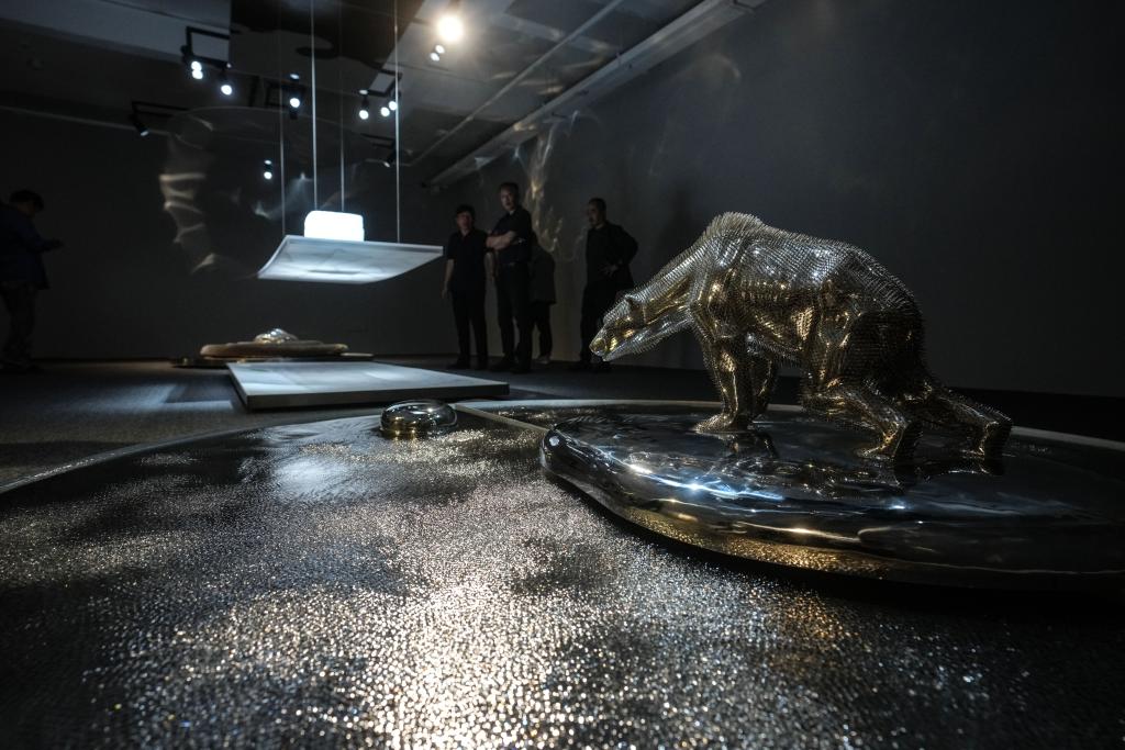 新华网沈阳9月30日电(记者潘昱龙)29日,一场名为“冰的记忆”装置艺术展在沈阳市红梅文创园发酵艺术中心开展。本次展出的装置艺术品由中国美术家协会理事、辽宁省美术家协会副主席、艺术家解勇设计制作。展品包括三组装置,通过装置震动、冰水溶解观众留言等艺术化的表达方式,旨在唤起观众对环境问题的关注。展览将持续到11月16日,其间还将举办气候工作坊与艺术对谈等活动。