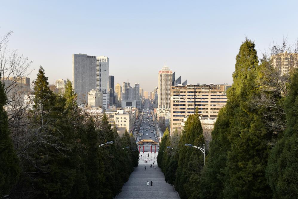 这是3月21日在烈士山公园拍摄的鞍山市区风光。