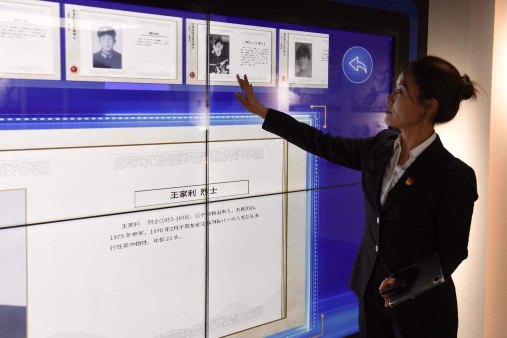 3月21日,在鞍山烈士纪念馆内,讲解员演示多媒体互动展览项目。