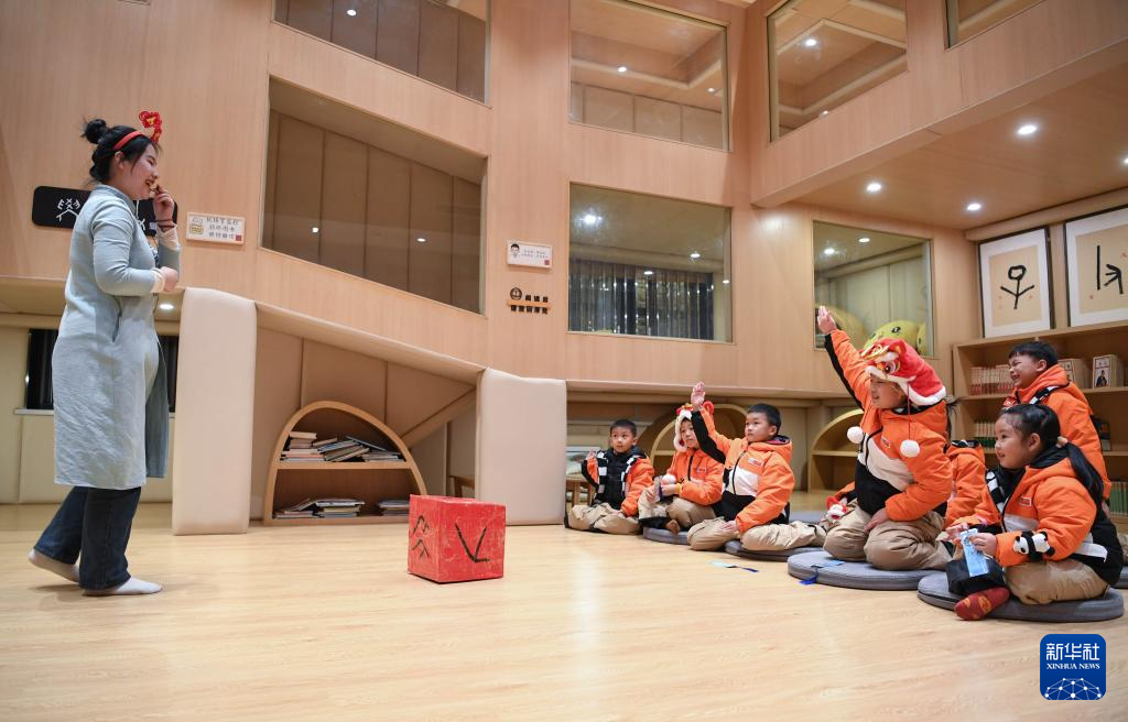 1月7日,“小沃柑”在沈阳老北市汉字主题书房与工作人员互动学习汉字相关知识。新华社记者 龙雷 摄