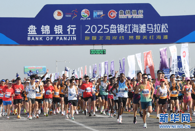 新华网沈阳9月21日电 9月21日,盘锦银行・2025盘锦红海滩马拉松在红海滩国家风景廊道鸣枪开跑,来自肯尼亚、印度尼西亚、日本等多个国家和地区的近1.2万名选手参赛。