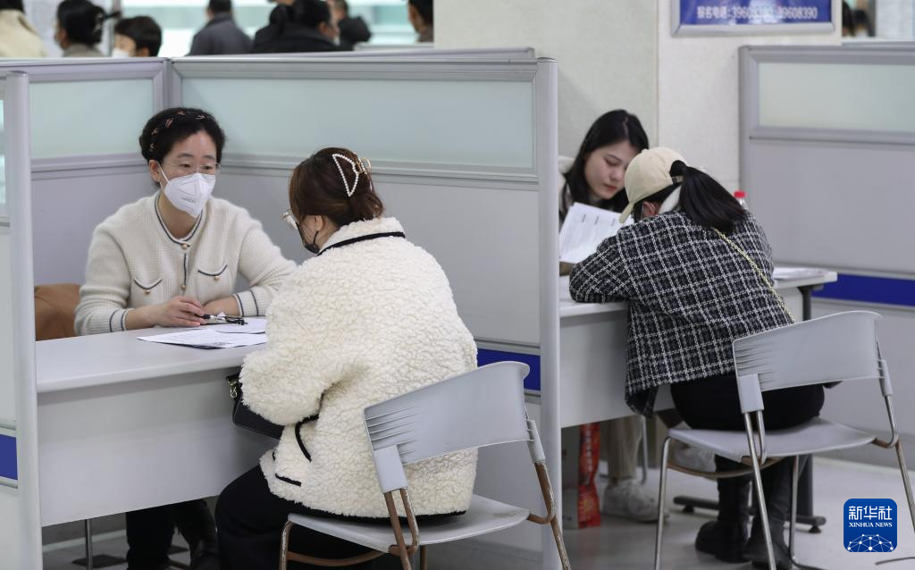 在大连市人力资源市场,求职者与招聘企业工作人员交流。新华社记者龙雷 摄