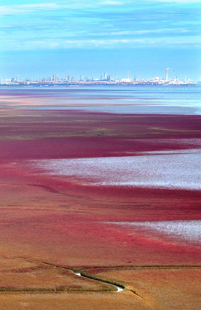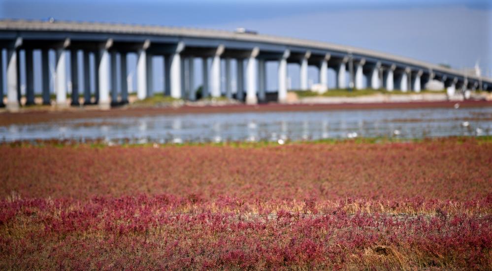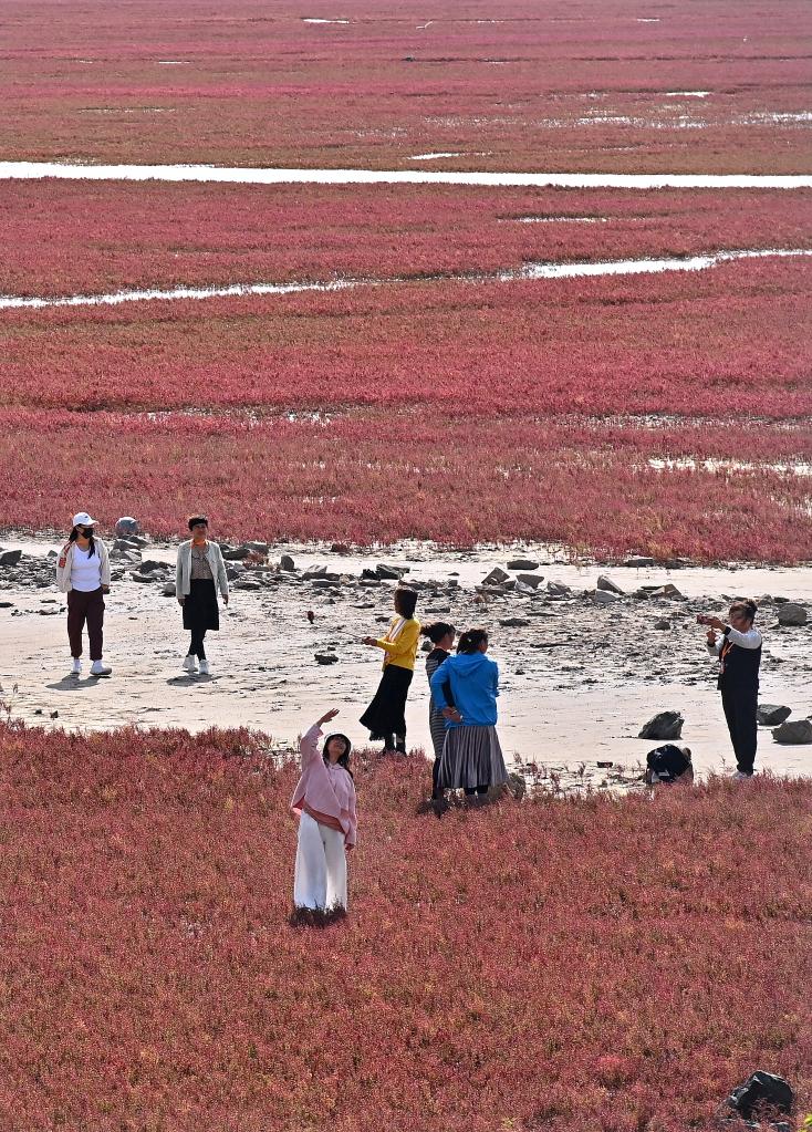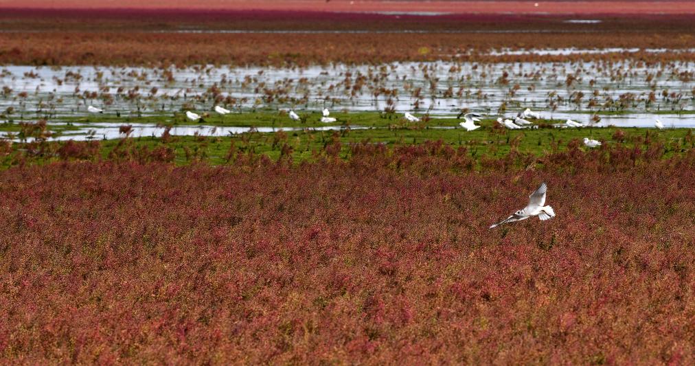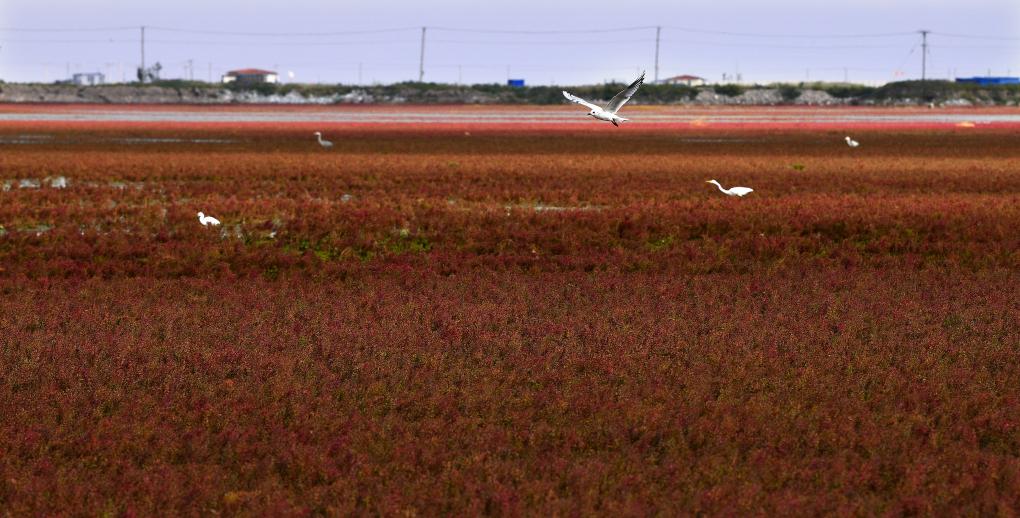 这块由大片碱蓬草组成的湿地