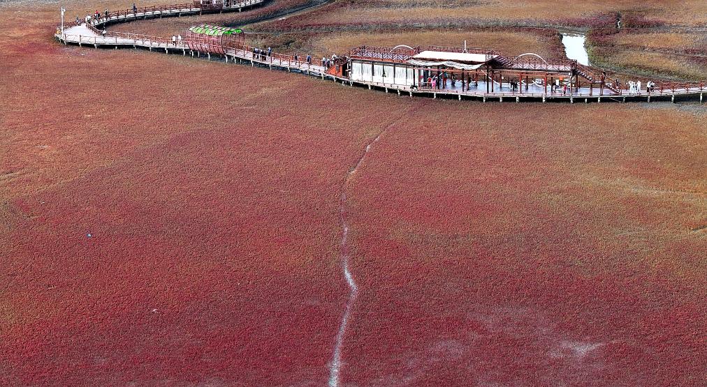 一片“红色海滩”呈现在眼前