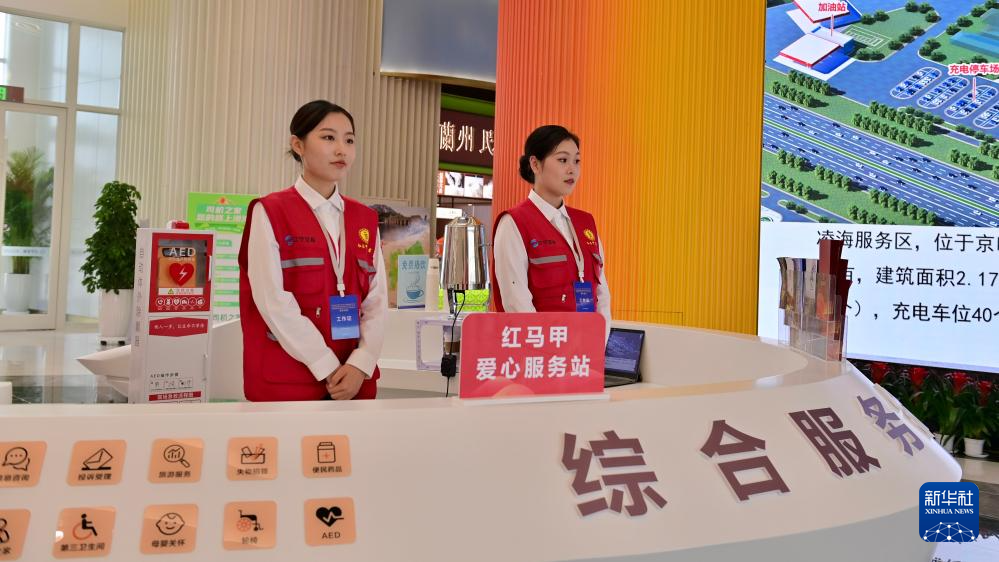 9月27日,在京哈高速哈尔滨方向上的凌海服务区内,红马甲爱心服务站工作人员准备迎接旅客。