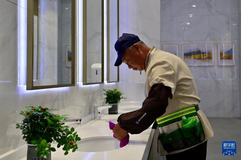 9月27日,在京哈高速哈尔滨方向的凌海服务区,保洁员在工作。