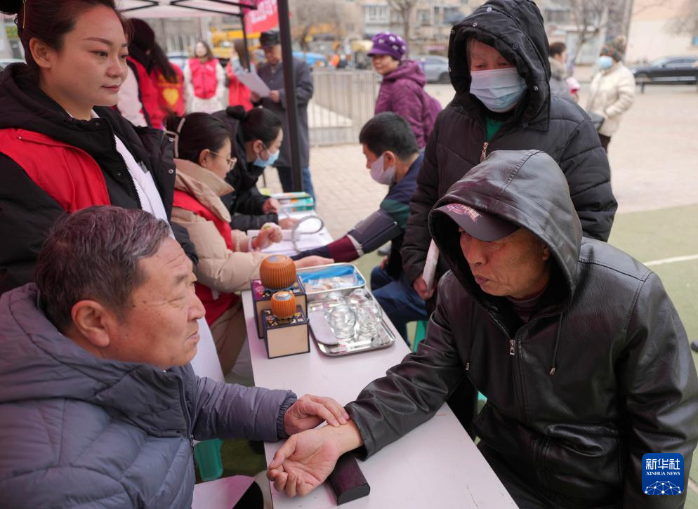 3月4日,在沈阳市铁西区重工新村社区广场,志愿者为居民义诊。