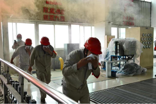 模拟火灾现场,员工正疏散逃生