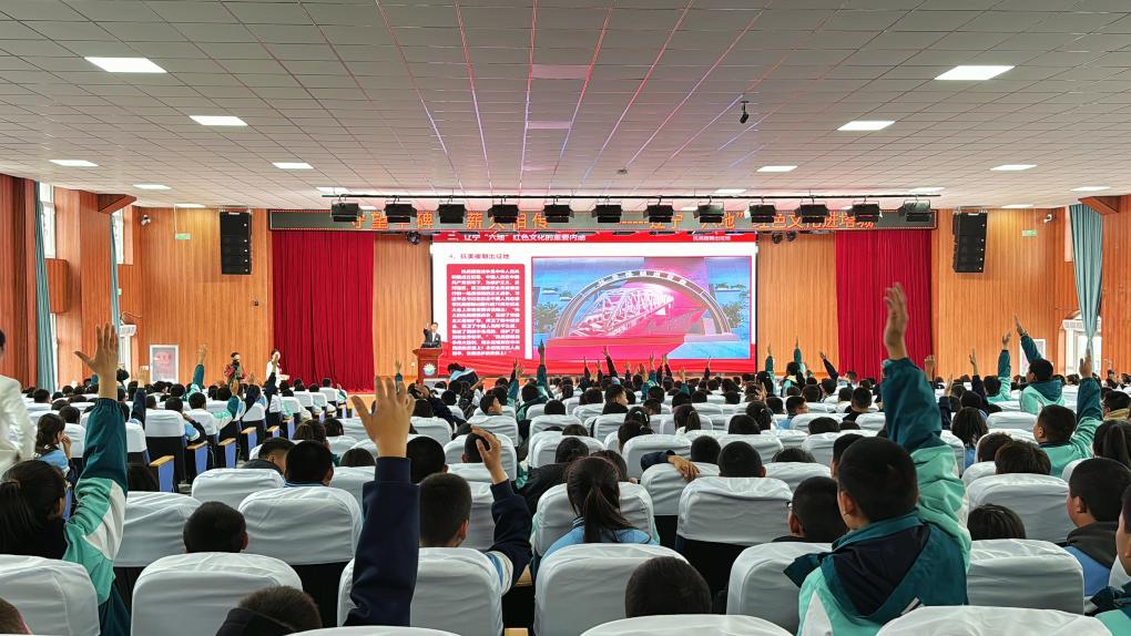 在塔城市第四中学,宣讲团以通俗易懂的语言、丰富的互动形式,讲述英雄事迹及感人故事,为师生们带来了一场红色文化的盛宴。通过现场竞答、奖励明信片与书籍等方式,学生们积极参与,宣讲结束后,同学们纷纷到台前盖纪念章留念,并到舞台上载歌载舞,热情高涨。红色文化的种子在他们心中生根发芽,激发了他们对历史的敬畏与对未来的憧憬。此外,宣讲团还展示了数字化技术裸眼3d全息投影等现代科技手段,将辽宁“六地”红色文化以更加生动 、直观的方式呈现给塔城人民。这不仅丰富了宣讲形式,更提升了宣讲效果,让红色文化在两地人民心中留下深刻印象。